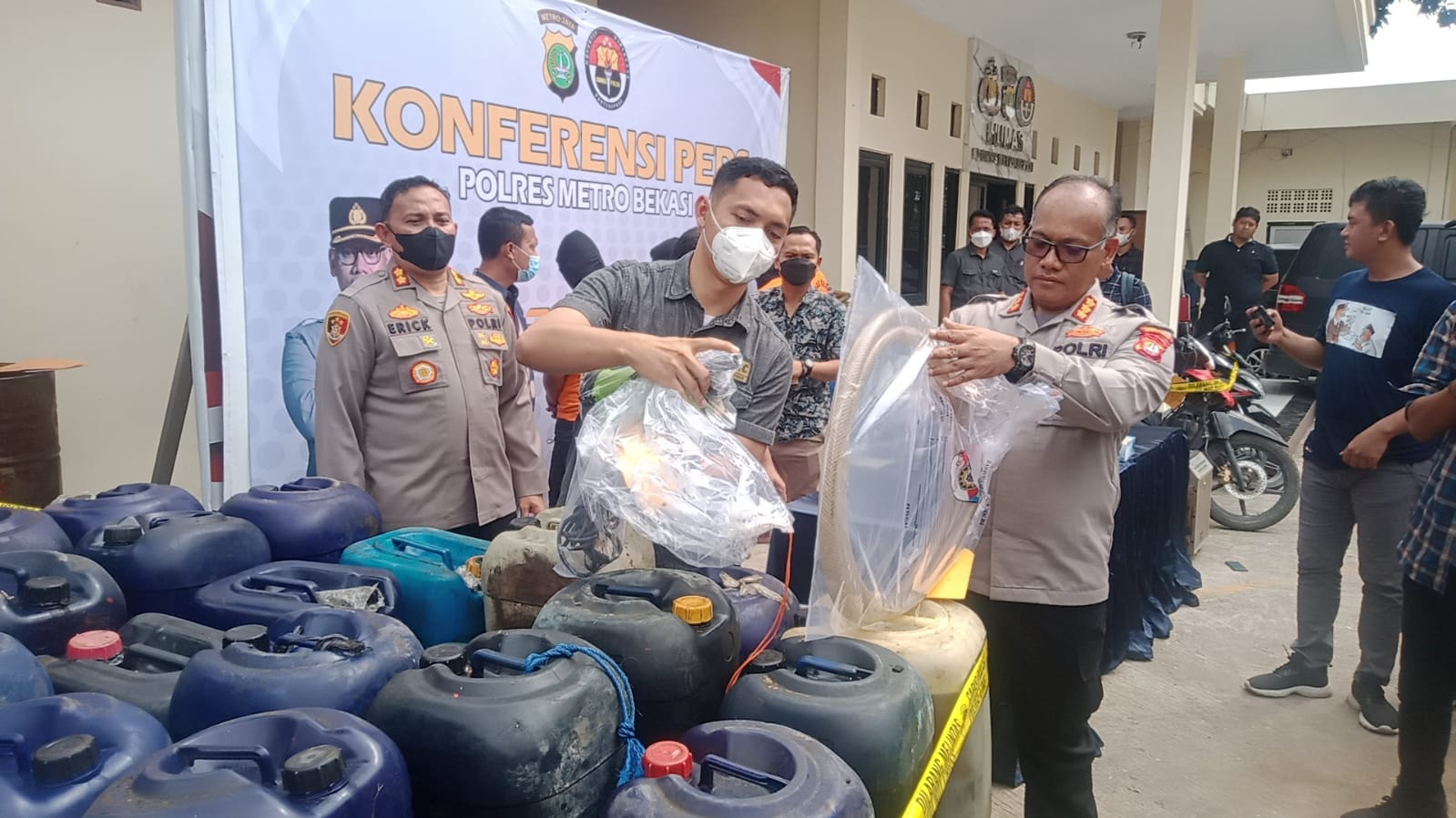 Berbekal dari laporan warga kemudian Unit VI Krimsus Polres Metro Bekasi melakukan penindakan dan dilokasi petugas telah menemukan barang bukti berupa BBM jenis solar, yang merupakan milik pelaku RD, dengan memerintahkan 2 (dua) orang atas nama EN & AL.