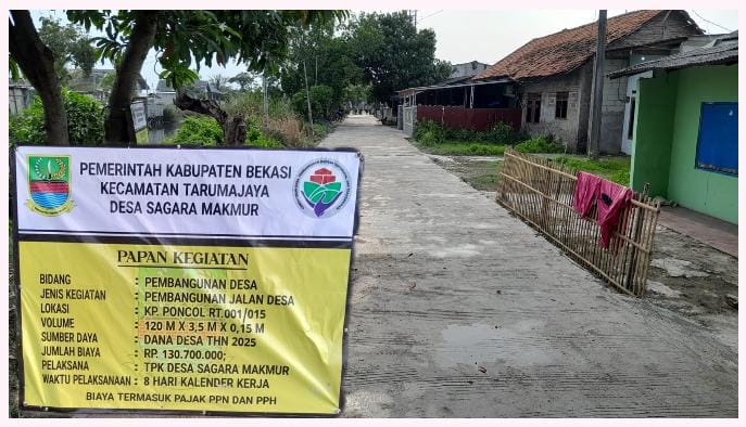 JBN Bekasi – Merasa urgent, jalan Desa sekaligus jalan penghubung antar Desa telah selesai dikerjakan oleh Kepala Desa Segara Makmur yang berlokasi di kampung Poncol RT.001/015, Desa Segara Makmur, Kecamatan Tarumajaya, Kabupaten Bekasi, Jawa Barat, dengan waktu pelaksanaan 8 hari kalender kerja.