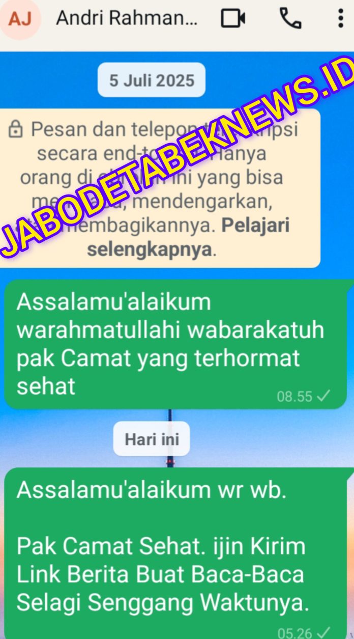 “Hingga berita ini diturunkan, belum ada keterangan resmi dari Camat Jonggol, Andri Rahman, terkait alasan pemblokiran nomor wartawan tersebut. Upaya konfirmasi masih terus dilakukan guna mendapatkan klarifikasi langsung.