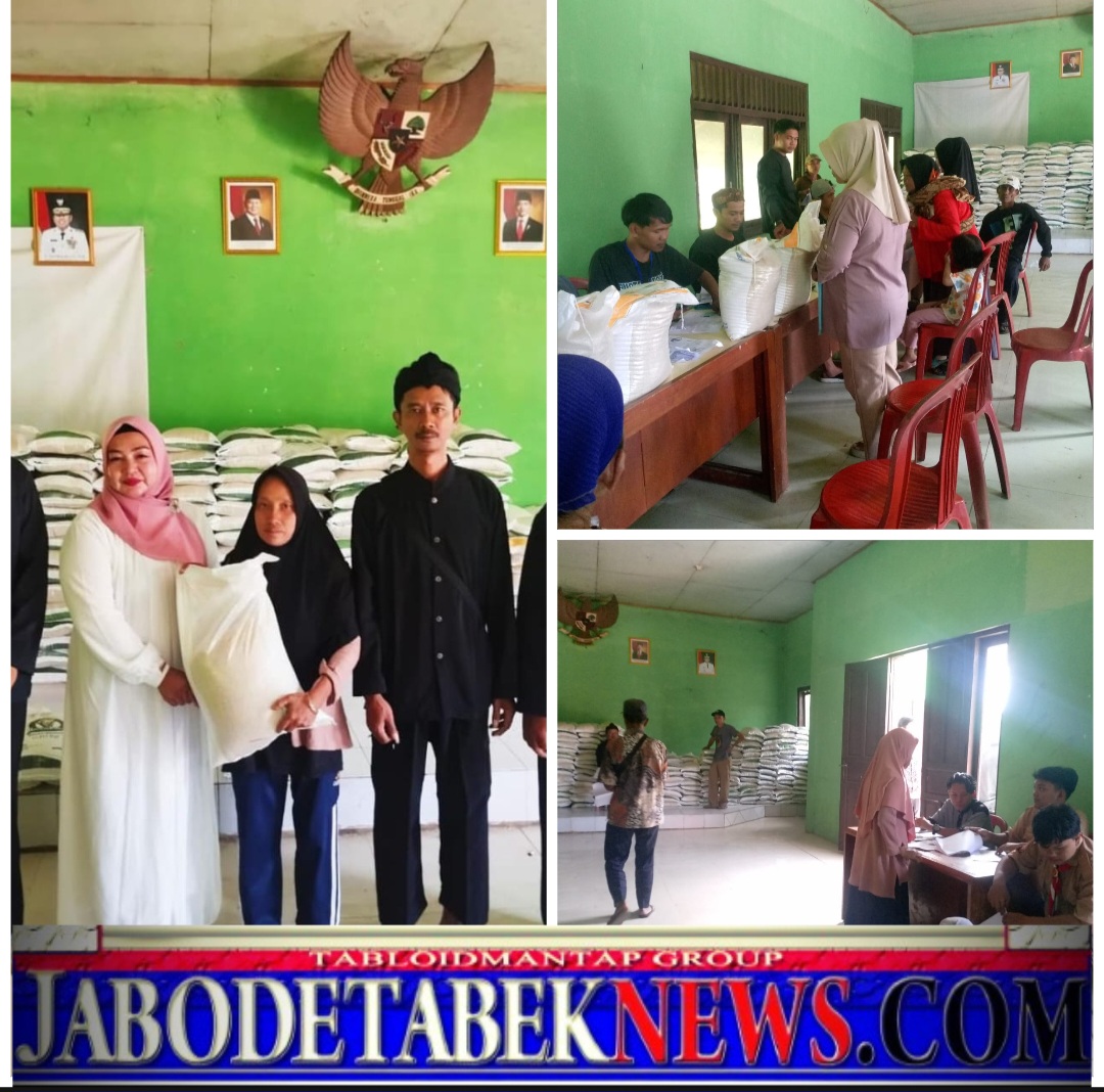 Diawasi langsung oleh Kepala Desa, pembagian beras oleh pemdes Bendungan tampak cukup dimanfaatkan oleh para keluarga penerima manfaat (KPM) warga desa Bendungan, Kecamatan Jonggol.