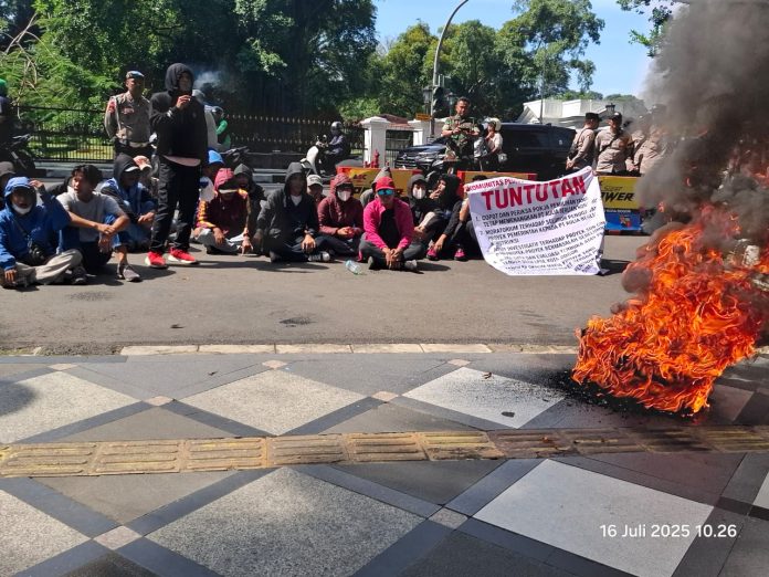 JBN Bogor – Komunitas Pemuda Peduli (KPP) Bogor Raya telah menggelar aksi unjuk rasa terkait proyek pembangunan SDN Cimanggu. Aksi itu dilaksanakan dengan membakar ban di depan Balaikota Kota Bogor, pada Rabu, (16/7/25).