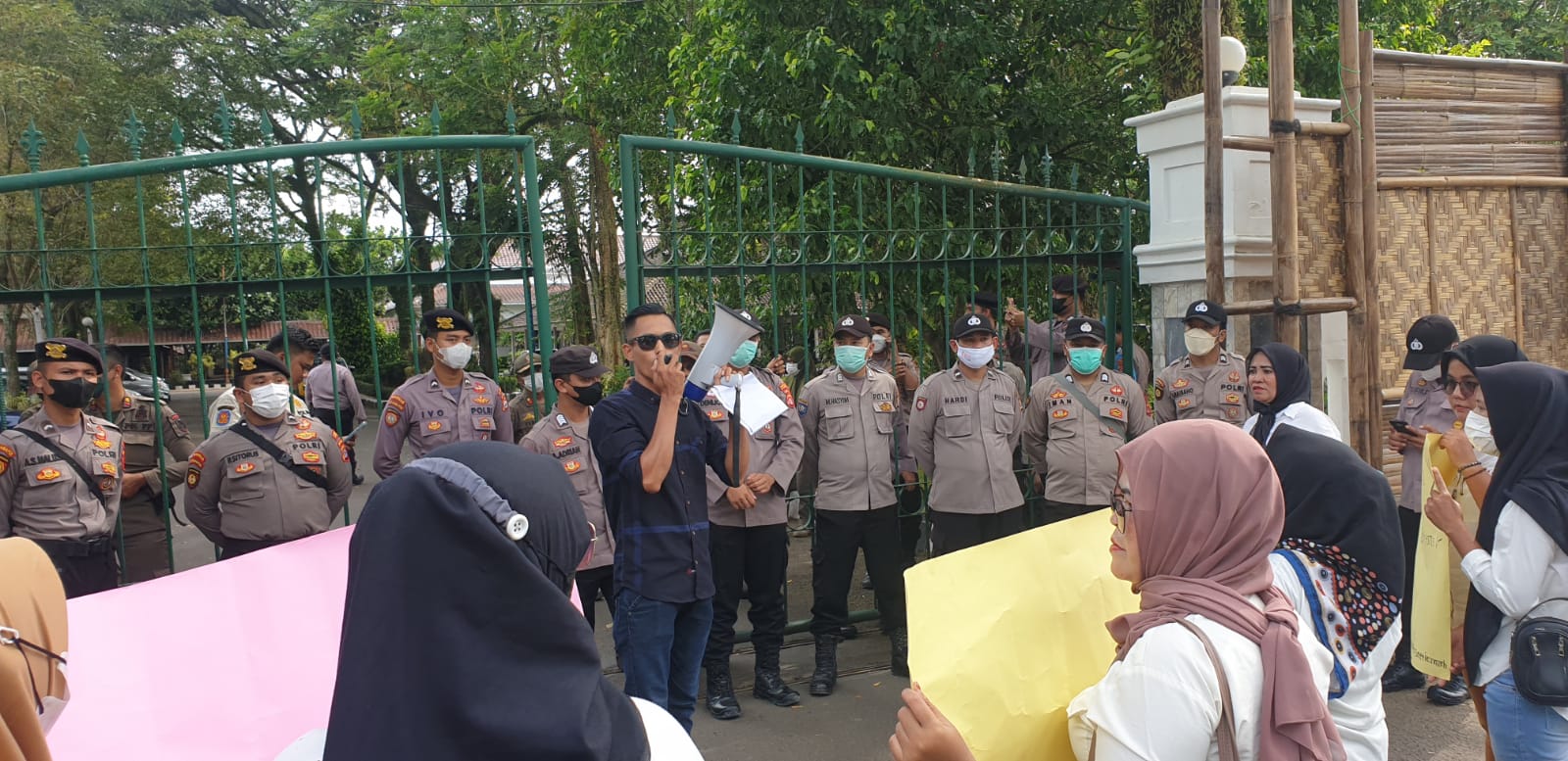 Penjagaan saat aksi demonstrasi yang dilaksanakan GEMPAR. (Foto/Tim)
