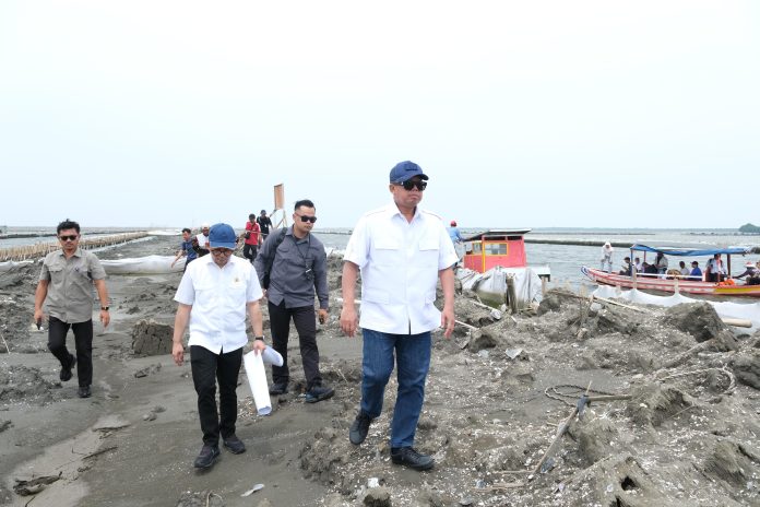 JBN Kabupaten Bekasi – Menteri Agraria dan Tata Ruang/Kepala Badan Pertanahan Nasional (ATR/BPN), Nusron Wahid meninjau lokasi terbitnya Sertipikat Hak Guna Bangunan (HGB) di atas laut yang berada di Kabupaten Bekasi, Selasa (04/02/2025).