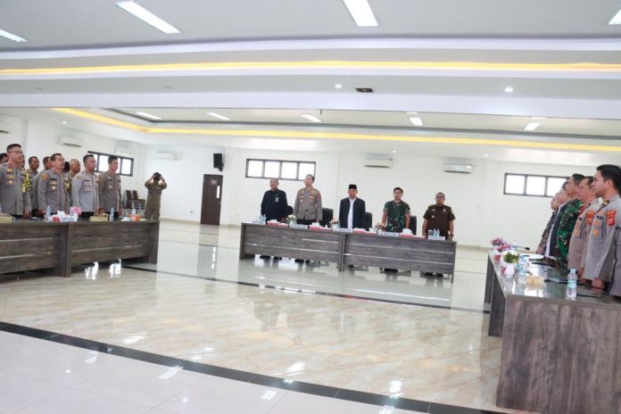 Polres Bogor (JBN) – Sebagai kesiapan dalam mengamankan jalannya pemilihan umum (Pemilu) 2024, Polres Bogor dan Instansi terkait menggelar rapat koordinasi lintas sektoral “Operasi Mantap Brata Lodaya 2023-2024” di Aula Sanika Satyawada Polres Bogor. Pada Rabu, 11 Oktober 2023.