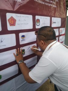 Sejalan dengan komitmen penyelenggara pemilu dan seluruh pemangku kepentingan pemilu dibacakan deklarasi damai bersama: