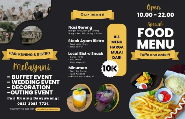 Trisna hidayati, salah satu pengusaha kuliner ini mengatakan, Beberapa orang memilih tempat cafe yang enak di Daerah Banyuwangi karena menunya yang menarik dan enak. Salah satu tempat nongkrong dengan menikmati berbagai makanan olahan dan minuman hadir saja di Pari Kuning & Bistro. “Ungkapnya. Senin (05/06).