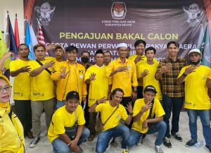 Bekasi(JBN) – Ketua DPD Partai Golkar Kabupaten Bekasi, H. Akhmad Marjuki di dampingi pengurus Partai Golkar, secara resmi telah mengajukan 55 Bakal Calon Legislatif (Bacaleg)nya ke kantor Komisi Pemilihan Umum (KPU) Kabupaten Bekasi di Jln. Raya Rengas Bandung, Kecamatan Kedungwaringin, Kabupaten Bekasi, Jawa Barat, Jum’at (12/5/2023).