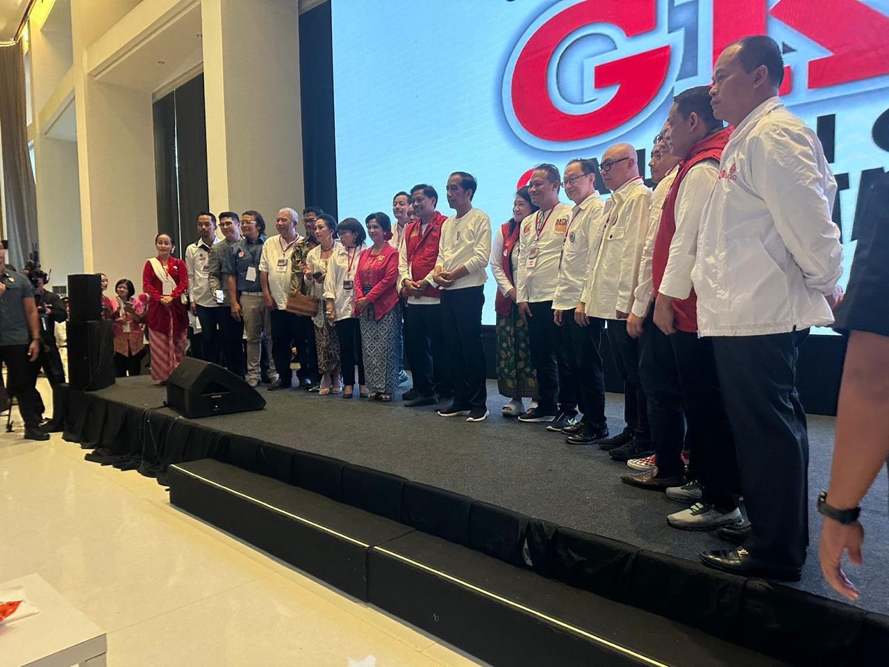 Ketua Umum GK Center Kelik Wirawan terkejut saat Presiden Joko Widodo tiba di tengah perayaan acara HUT GK Center yang ke-12 dan satu dekade kepemimpinan Presiden di Ciputra Artpreneur, Mega Kuningan, Jakarta Selatan.