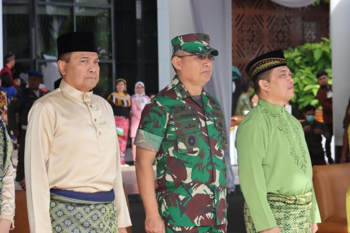 Pontianak(JBN) – Pangdam XII/Tanjungpura Mayjen TNI Sulaiman Agusto, S.I.P., M.M., diwakili Kasdam XII/Tpr Brigjen TNI Djauhari, S.E., M.M., menghadiri upacara peringatan Hari Ulang Tahun ke-66 Pemerintah Provinsi Kalimantan Barat. Upacara berlangsung di Halaman Kantor Gubernur Kalbar, Jalan Ahmad Yani, Kota Pontianak, Sabtu (28/01/23).