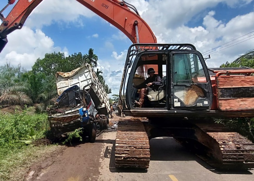 Bahkan, dalam proses evakuasi petugas harus mendatangkan Ekskavator untuk menarik keluar Dump Truck dari dalam parit, baru kemudian mengevakuasi supir.