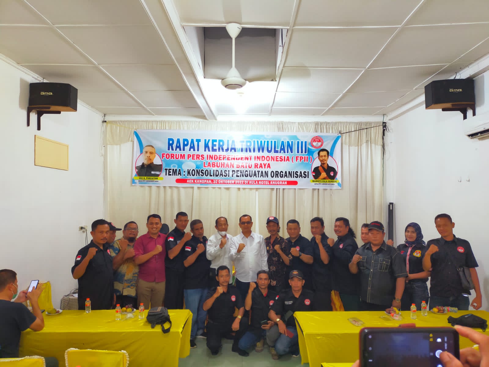 Labura(JBN) – Rapat Kerja Triwulan III Forum Pers Independent Indonesia (FPII) Labuhanbatu resmi dibuka oleh Kapolsek Kualuh Hulu yang di wakili Iptu TM. Ginting di Aula Hotel Anugerah, Aek Kanopan, Minggu (30/10/22).