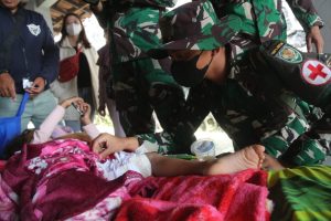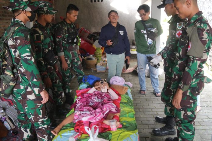 Cianjur(JBN) – Yonif Raider 300/Bjw secara intensif mengirimkan 12 Personel Peleton Kesehatan dipimpim oleh Letda Ckm Rianja Ikhwan Ardhyatama untuk melaksanakan pengobatan kepada pengungsi Korban yang terdampak gempa Cianjur.