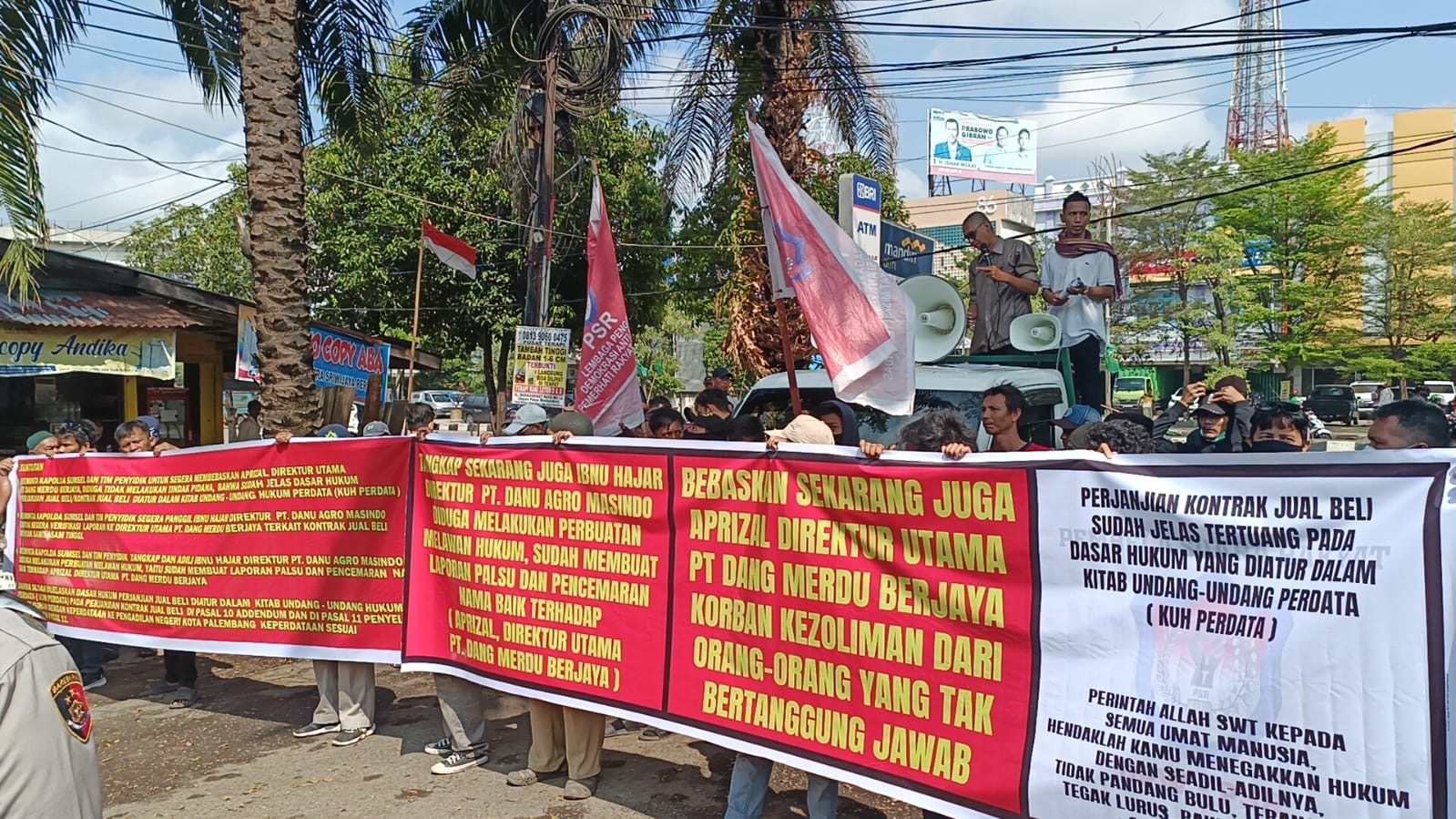 Dalam tuntutannya, Para pendemo mendesak agar Polda sumsel membebaskan Atas nama (AFRIZAL) Direktur utama PT Dang Merdu Berjaya yang sekarang lagi ditahan. Serta meminta agar Atas nama IBNU HAJAR selaku direktur utama PT Danu Agro Masindo yang melaporkan AFRIZAL Selaku Direktur Utama PT Dang Merdu Berjaya ke Polda segera di tangkap dan di tahan karena telah membuat laporan palsu, dan tidak di lengkapi dasar bukti yang jelas untuk menyatakan dasar hukum kepada Afrizal.