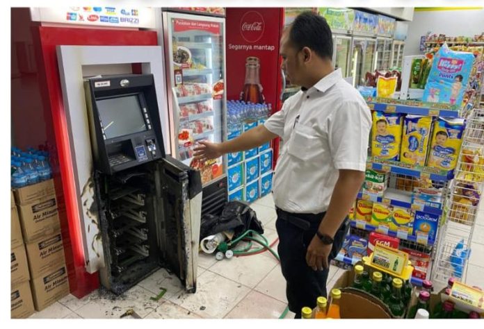 – Mesin ATM bank BRI dalam keadaan rusak dan terbuka, dan terdapa bekas Las, dan congkelan.