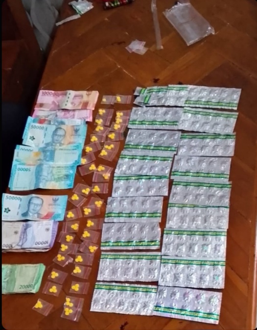 Dari lokasi kedua, petugas menemukan barang bukti berupa 181 butir pil Tramadol, 111 butir pil Eximer, serta uang tunai sebesar Rp. 850 ribu yang diduga hasil penjualan obat-obatan ilegal.