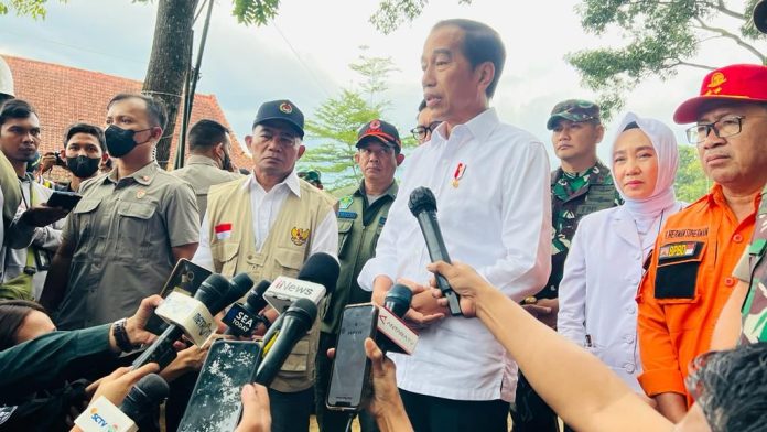 Cianjur(JBN) – Presiden Joko Widodo meninjau langsung lokasi terdampak gempa bumi di Kecamatan Cugenang, Kabupaten Cianjur, pada Selasa, 22 November 2022. Lokasi pertama yang ditinjau Presiden adalah jalan raya Cibeureum, penghubung wilayah Bogor-Cianjur di Kecamatan Cugenang yang sempat tertimbun longsor, namun kini telah dapat dilalui kendaraan.