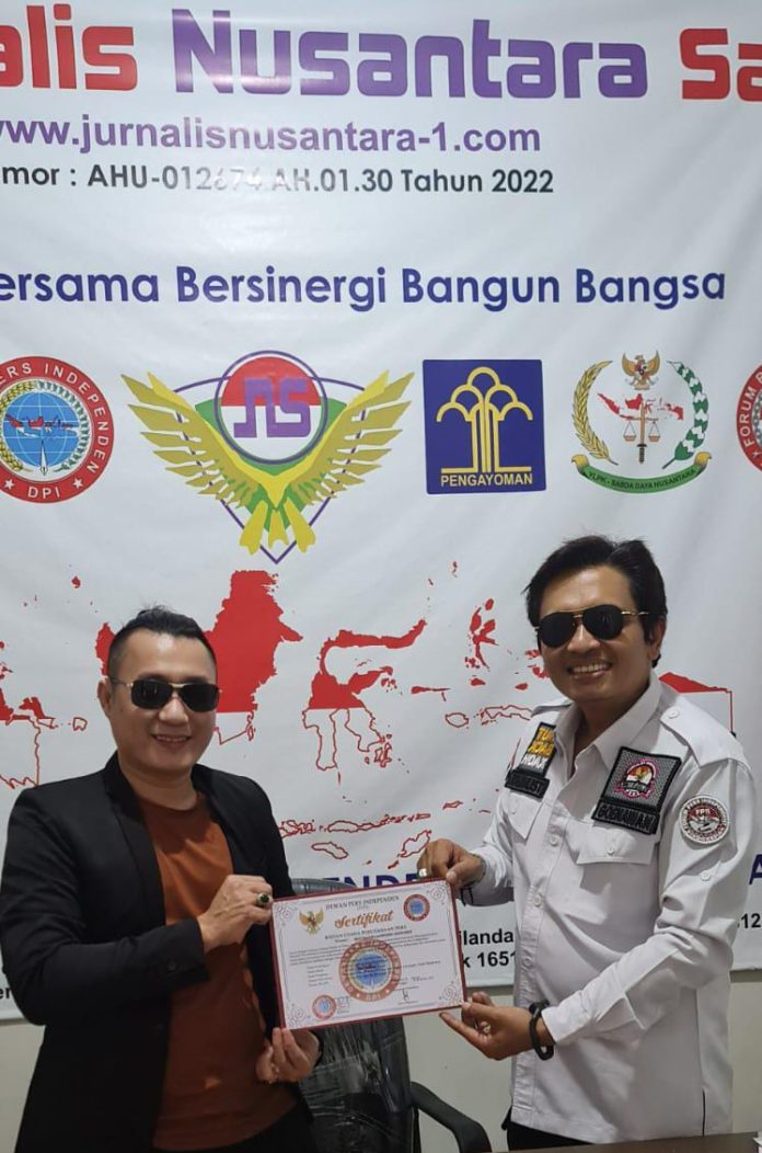 “Terima kasih kami ucapkan kepada Ketua Presidium DPI yang diwakili Sekertaris Presidium Dewan Pers Independen (DPI) Noven Saputra telah menyerahkan secara langsung pada hari ini.” jelas Pimred PT.Jurnalis Nusantara Satu Lilik Adi Goenawan.