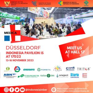 Lebih lanjut Mario Apriliansyah mengatakan, keberadaan Paviliun Indonesia pada MEDICA 2023 merupakan buah kolaborasi Kedutaan Besar Republik Indonesia (KBRI) Berlin dengan Kementerian Kesehatan (Kemenkes), Kementerian Perdagangan (Kemendag), Asosiasi Produsen Alkes Indonesia (ASPAKI), dan Perkumpulan Organisasi Perusahaan Alkes dan Laboratorium (GAKESLAB).