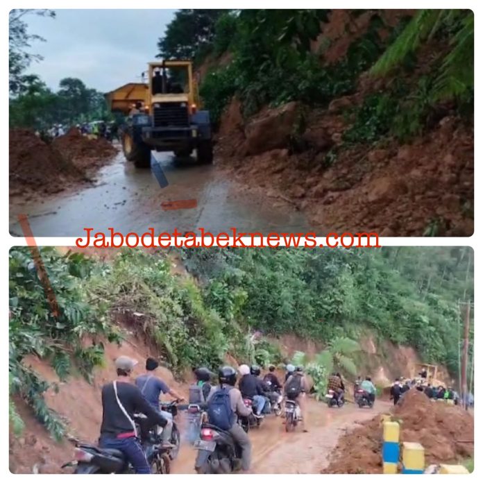 Kejadian tanah longsor yang terjadi akibat hujan deras yang terjadi benerapa hari ini telah menimbulkan tanah longsor yang menutupi badan jalan.