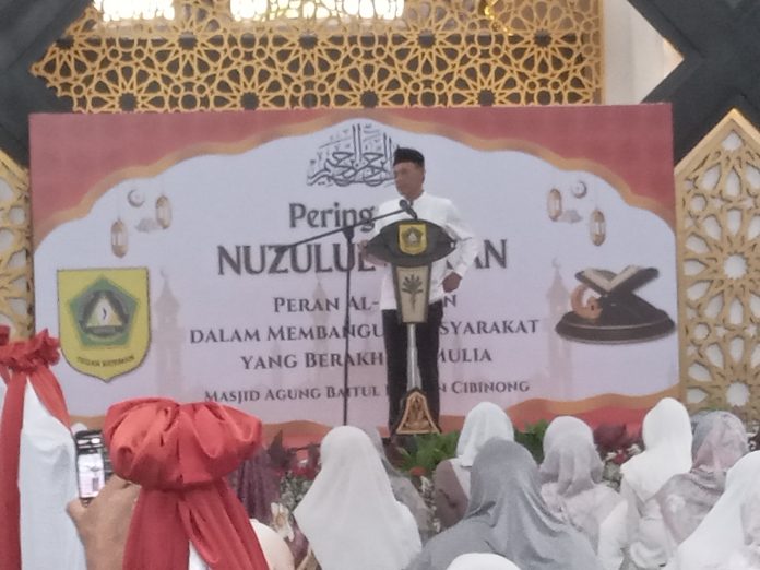 Ade Ruhandi wakil Bupati Bogor dalam sambutannya mengajak Pada tahun 2025 ini Nuzulul Quran diperingati bertepatan pada 16 Maret 2025 Malam Nuzulul Quran menjadi malam penuh keberkahan dan Allah SWT akan melipatgandakan pahala umat Islam yang memperbanyak ibadah di malam tersebut.