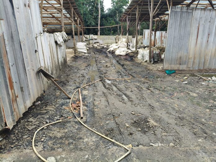“Ini pengelolaan pupuk organik dari limbah bulu ayam. Bau yang ditimbulkan sangat mengganggu warga,” ujarnya saat menunjukkan lokasi pengelolaan limbah.